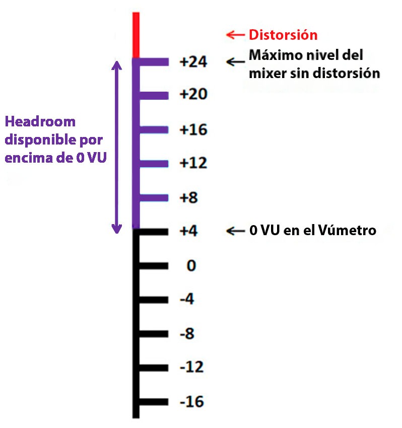 La distorsión es la última etapa del rango dinámico del mundo analógico. Hay que tener en cuenta, que, aunque nuestra señal esté en esta etapa, puede que no notemos una distorsión como tal (el sonido suena mal) si no que, dependiendo de la calidad del hardware, estemos añadiendo ese color analógico mágico que tanto nos gusta a los que nos dedicamos a esto. En cambio, si nos pasamos, podemos generar sobrecargas en los circuitos y además de generar defectos en el sonido, podemos poner en riesgo la integridad de algunos componentes de nuestro equipo.